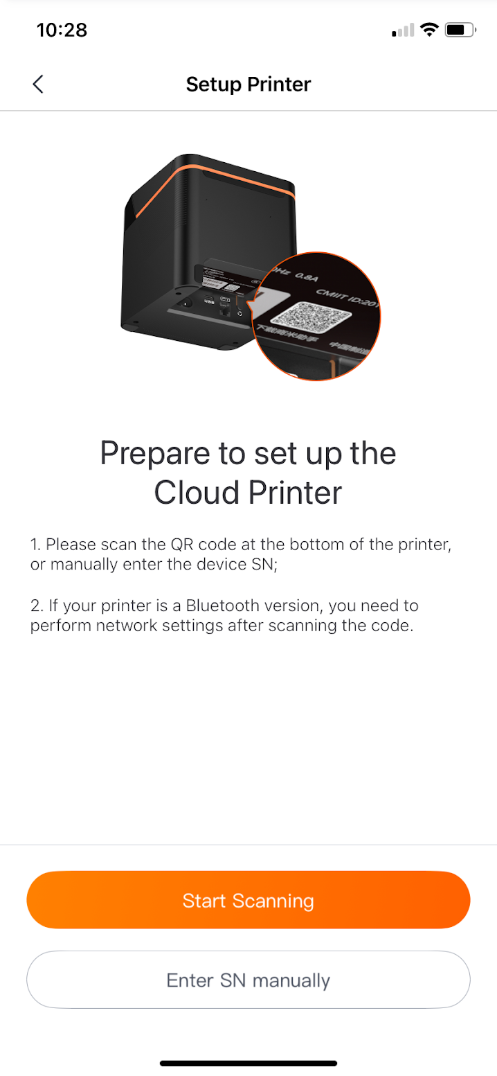 Scan the QR code on the bottom of the printer.